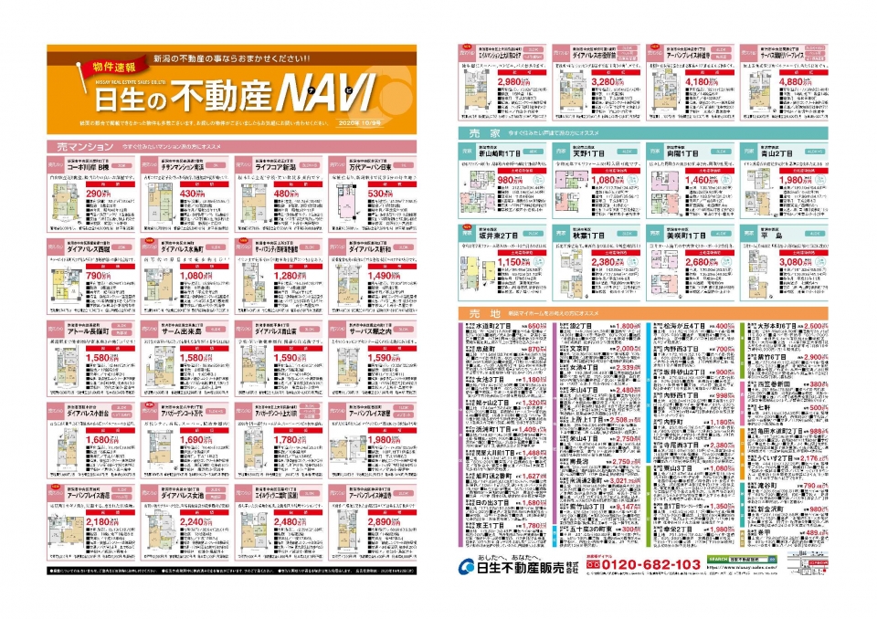 新潟日報(2020年10月9日朝刊)にて「日生の不動産NAVI(ナビ)」の折込広告を配布しました。 今すぐ住みたいマンション派の方、今すぐ住みたい戸建て派の方、新築マイホームをお考えの方それぞれにオススメしたい情報が満載です。 詳しくは、本ページ内 PDFでもご覧いただけます。 また、紙面の都合で掲載できなかった物件も多数ございますので、お探しの物件がございましたらお気軽にお問い合わせください。 日生不動産販売スタッフ一同、皆さまからのご連絡を心よりお待ちしております。