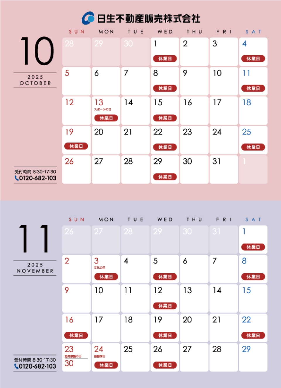 休業日ご案内2025年10月01日