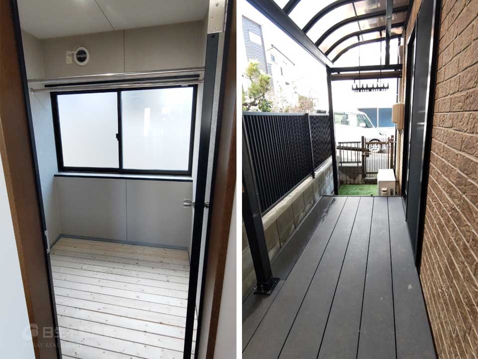 ○物干スペースとして活用可能な1階テラスや2階サンルーム