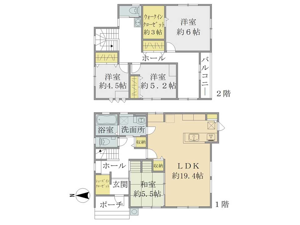 ○玄関にはシューズクローク、2階寝室にはウォークインクローゼットを完備