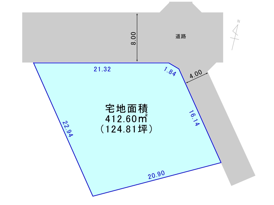 | 接道状況 | 北側約8m公道、北東側約4m公道 |