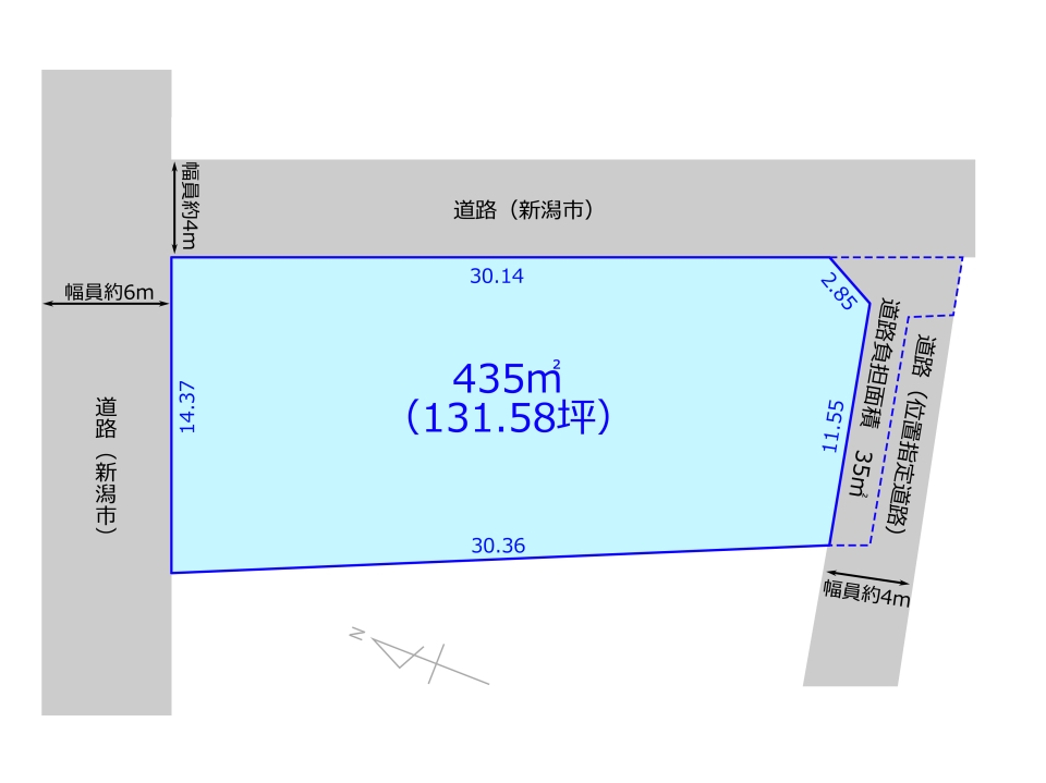 | 接道状況 | 北側約6.0m公道、東側約4.0m公道、南側約4.0m私道(位置指定有) |