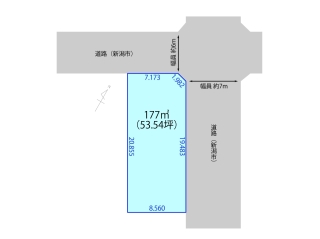 接道状況 | 北西側 約6.0m 公道(新潟市) 北東側 約7.0m 公道(新潟市) |