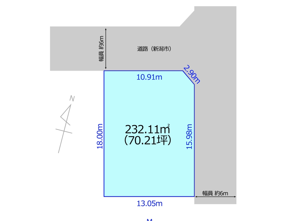 | 接道状況 | 北側約6m公道、東側約6m公道 |