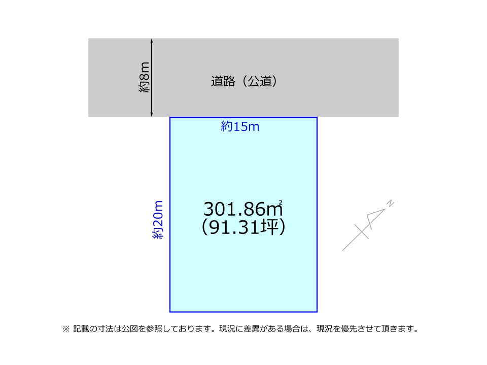 | 備考 | ※現況渡し ※確定測量実施予定 ※上下水道管、都市ガスは前面道路まで整備あり(宅地内引込なし) |