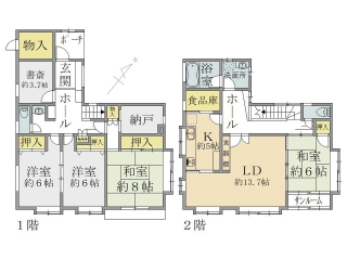 各部屋に収納完備、食品庫や納戸もあり収納充実。
